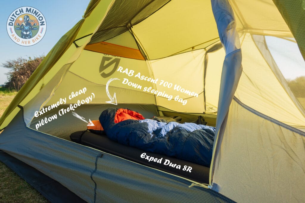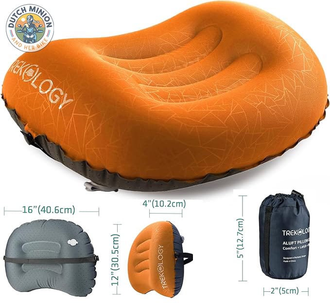Uiteindelijk heb ik een simpel opblaasbaar kussentje van Trekology met een elastische band voor om de slaapmat zodat deze er niet afglijdt. Deze is licht voorgevormd om wat ruimte te bieden voor de schouder. Onverwacht bleek deze de beste keuze te zijn voor mij persoonlijk ten opzichte van veel duurdere concurrenten.