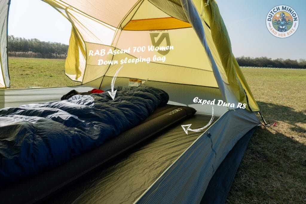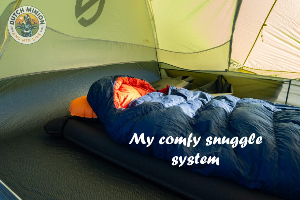 De synthetische slaapzak heb ik op het begin gebruikt voor het kamperen met de motor, alleen nam deze te veel ruimte in beslag in mijn bagage. Het zorgde ervoor dat ik op zoek ging naar iets anders.