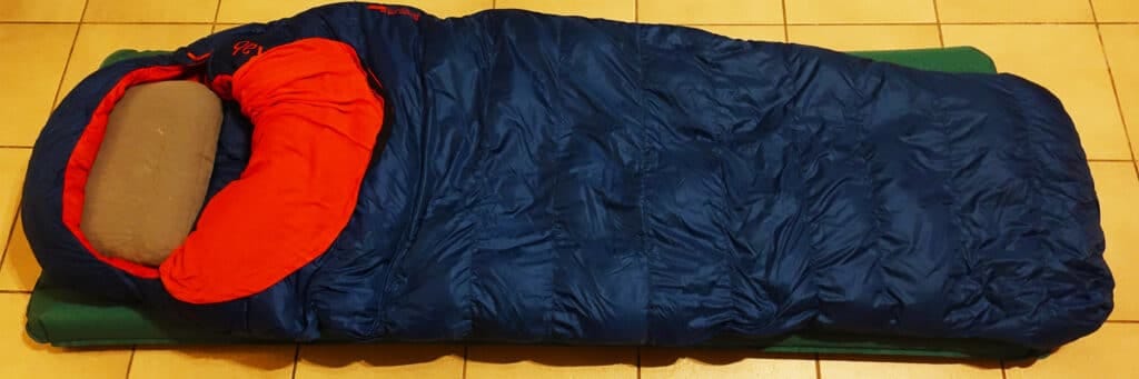 My choice ultimately fell on a down sleeping bag from RAB. The Ascent 700 Women. This one is slightly shorter than most sleeping bags (suitable for a body length of 170cm) and has a bit more room at the hips due to the average body shape of women. To reduce the burden on the sleeping bag from the body’s influences, I also have the Sea to Summit Liner Extreme in it. This absorbs a lot of moisture and odors, which can also be used separately in the summer. For example, during very warm nights. When traveling you can simply leave the liner in the sleeping bag and pack it into the compression sack (also one from Sea to Summit because RAB’s is not really a compression sack).