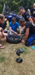 But besides motorcycling, workshops were also given. For example, about applying First Aid outside the civilized world and updating the basic knowledge about the engine for emergency repairs if necessary. The participants could also practice themselves under the guidance of the trainer.